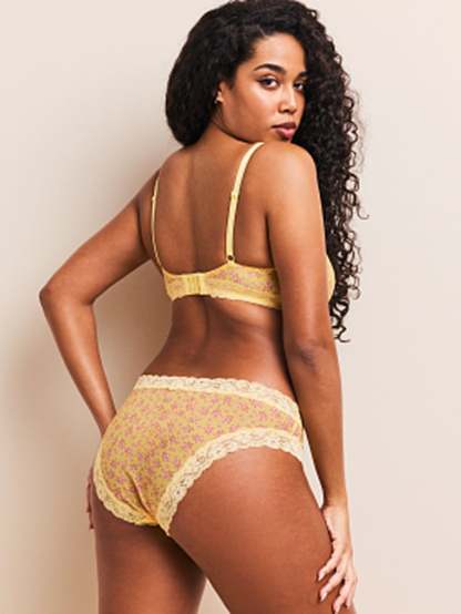 Playful, flirty, and the perfect addition to your lingerie drawer. Delicate lace trim adds the finishing touch to this romantic, everyday pair. Make it a match with the Akari Unlined Demi Bra.