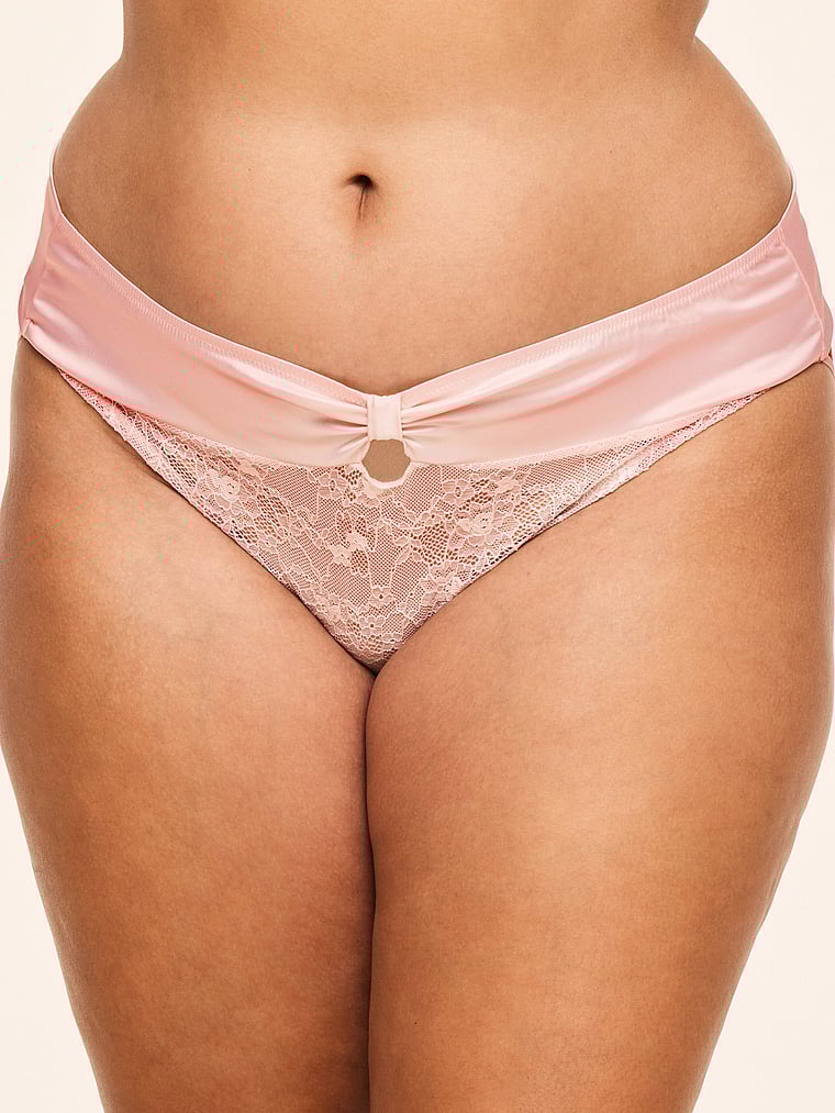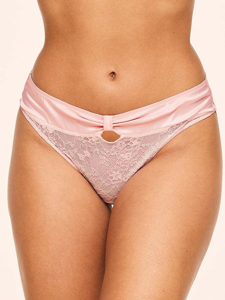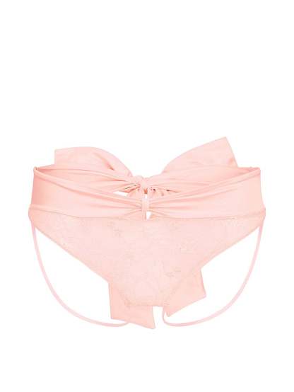 Sexy and saucy, this lacy crotchless Panty is made of a super-soft, stretchy material for comfort and finished with strappy details and a functional satin tie-back for a touch of sass.