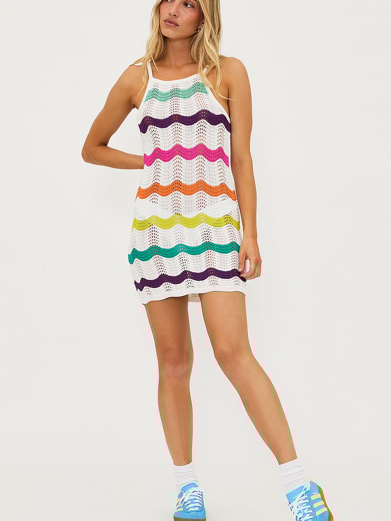 This vintage-inspired crochet mini gets a fun finish thanks to bold, contrasting colors. Wear it over your Bikini or pair with sneakers (and a gelato) on a hot summer’s day.