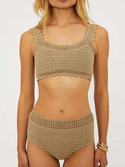 A bohemian summer dream, this vintage-inspired, crochet Bikini Bottom features a flattering, high-waisted silhouette and scalloped trim. Pair it with the Andy Top for a coordinated Swim look.