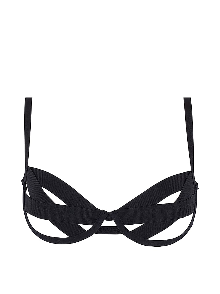This style is a must-have in any contemporary lingerie wardrobe. Wide elastic straps form the cups and can be adjusted to give the desired coverage.