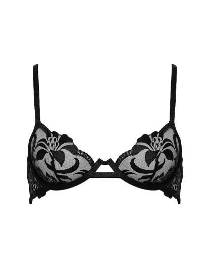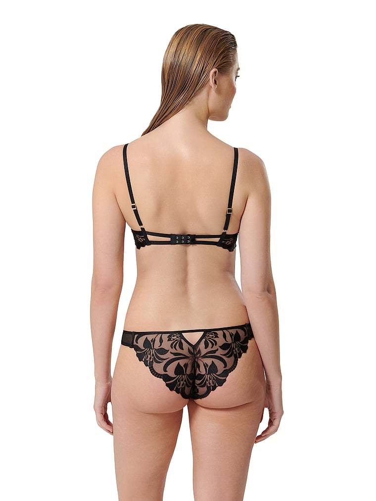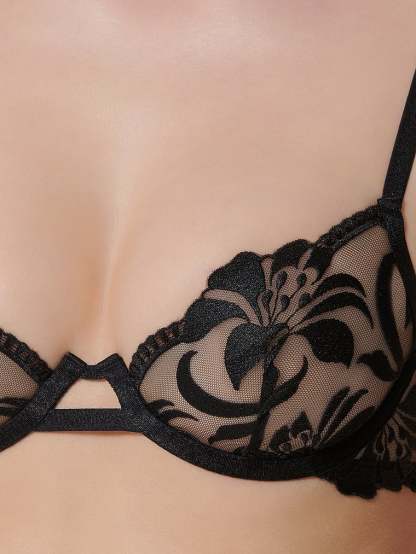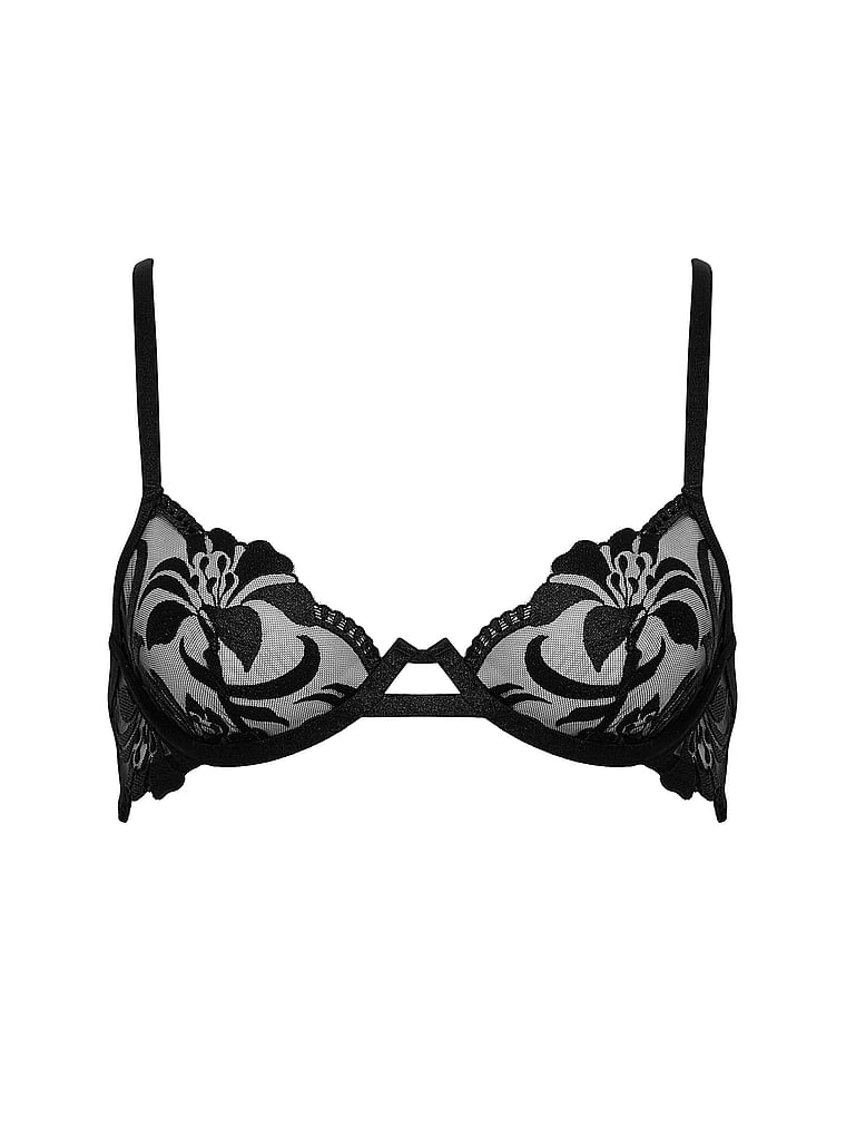Sweet, floral-inspired embroidery offsets semi-sheer mesh on this balconette-style Bra. Pair it with the Leonora Brief Panty to complete the look.