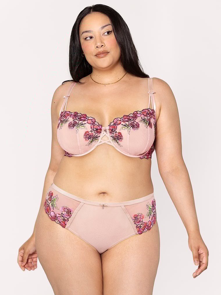 Curvy Couture Lush Embroidery Strappy Back Brief