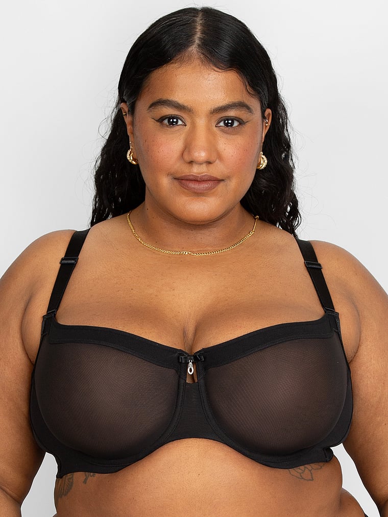 Curvy Couture Sheer Mesh Unlined Balconette Bra