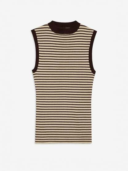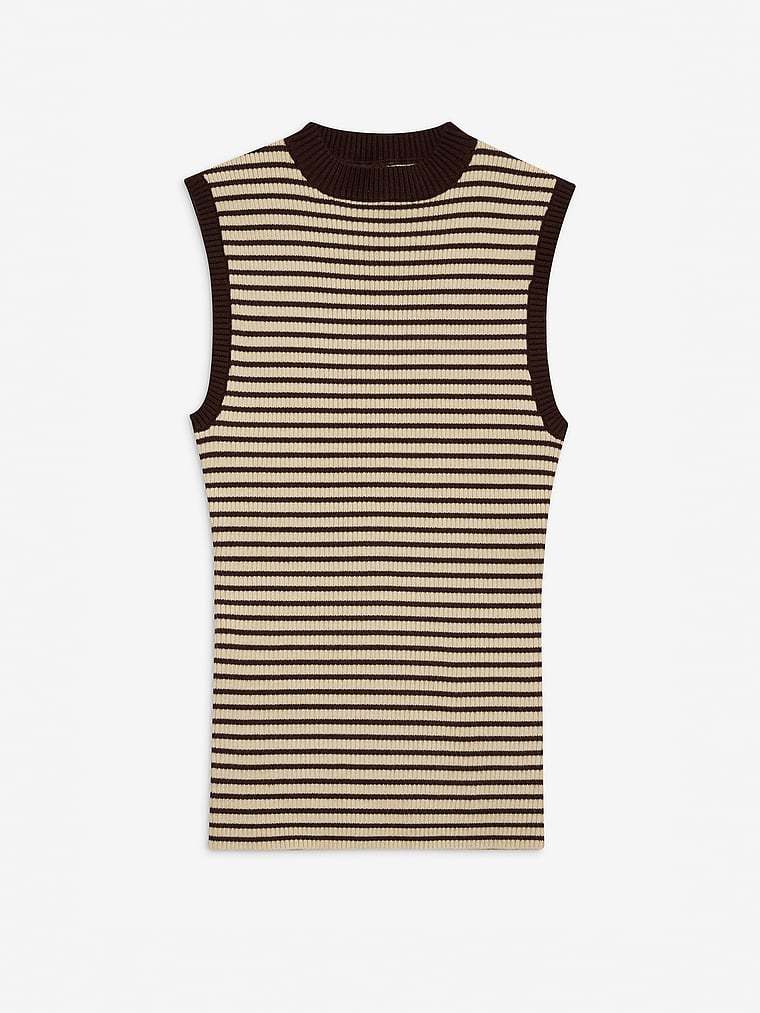 Stripe it rich in this knit Sweater, a versatile piece for layering or wearing on its own. This sleeveless design can be styled with everything from jeans to skirts or the matching mini skort. By Frankies Bikinis.