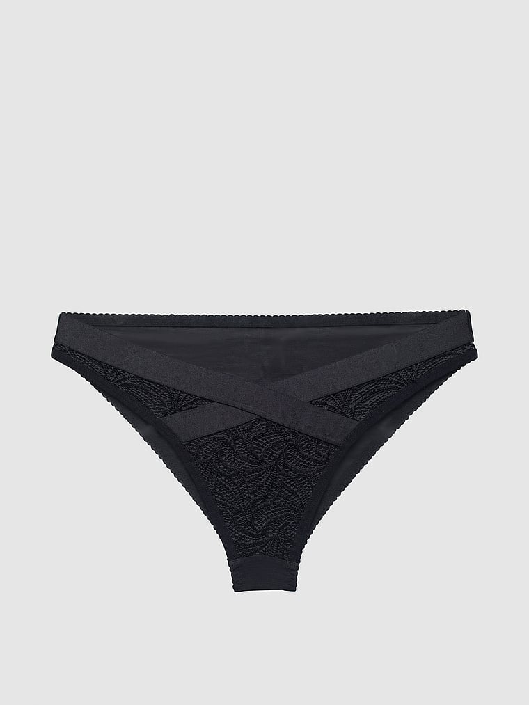 This bikini Panty is a bold blend of delicate lace and sleek design. With intricate lined lace and an edgy crossover front, it's crafted to make you feel unstoppable.
