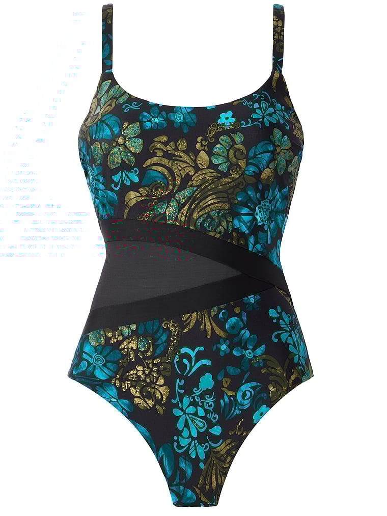 A powerful mesh insert accents the waist on this chic poolside essential that’s crafted from a Miratex fabric to provide allover body control to shape and slim your curves.