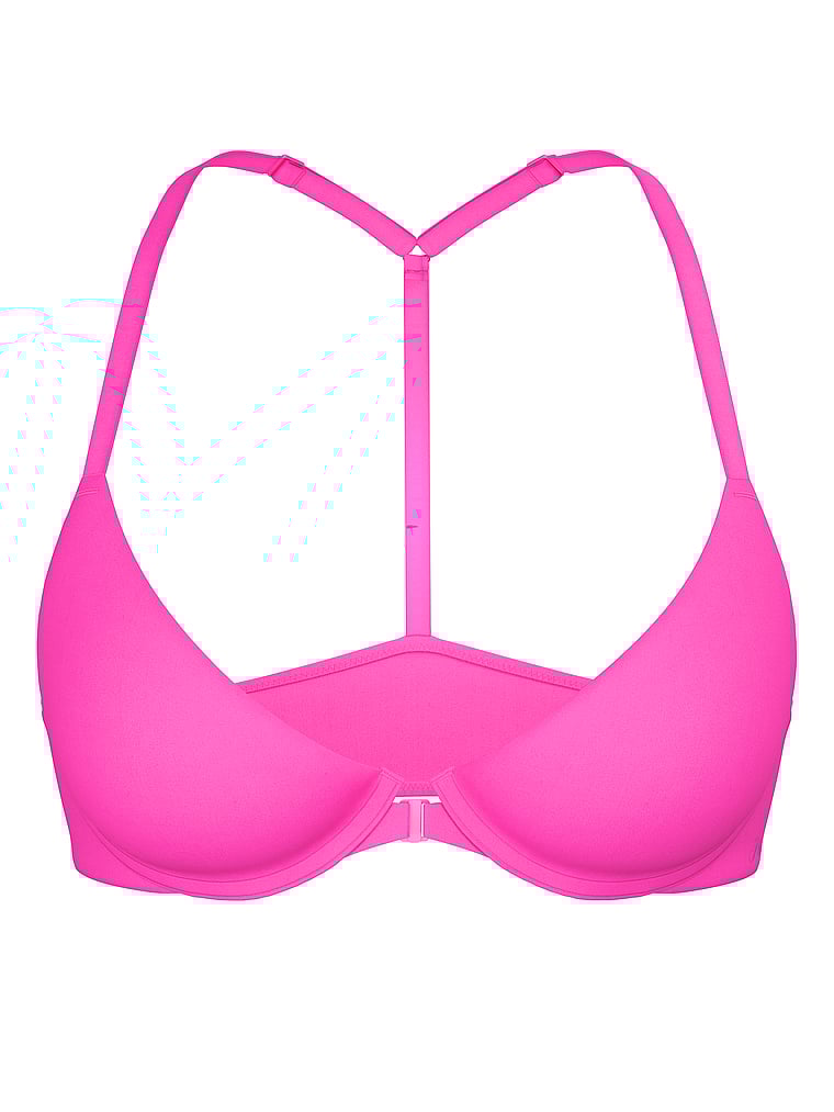 As supportive as your BFF, this everyday fave has got a cute, new look. This top-drawer essential has the same, super comfy fit and flattering lined cups that provide natural shape, but now she's got a front-clasp closure and a sleek, t-back silhouette. What’s not to love?