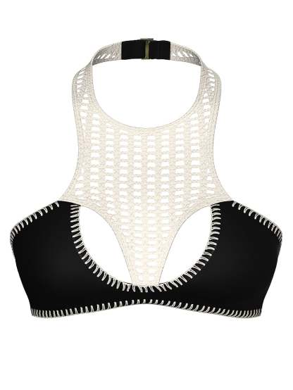 Opposites attract. Smooth and sporty neoprene meets its match with boho-chic crochetwork and blanket-stitching details for a modern-vintage spin on swim. You'll be a surfside standout in this unique high-neck Halter Top.