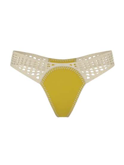 Opposites attract. Smooth and sporty neoprene meets its match with boho-chic crochetwork and blanket-stitching details for a modern-vintage spin on swim. You'll be a surfside standout in this sexy Thong.